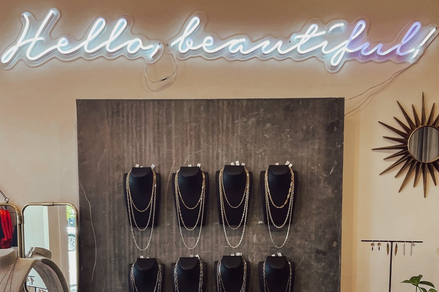 The jewelry is made in the back of this quaint yet glamorous store. Knowing that time and care went into making your newest bauble makes it all the more special. There are hundreds of unique art pieces for you or someone else. Each item is placed strategically throughout the store, which unfolds as you explore the walls and tables of treasures.