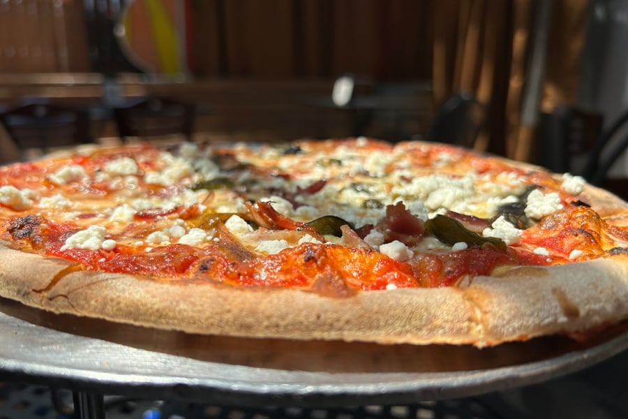 In our humble opinion, pizza is best enjoyed outdoors. Their patio makes for the perfect spot to enjoy your meal under their lush foliage while soaking in the vibrant neighborhood atmosphere. The cozy ambiance, complete with exposed brick walls and eclectic art, adds to the overall charm of the place. As a result of their commitment to high-quality ingredients, each bite is a burst of flavor, practically recreating your first-ever bite of pizza. Whether you prefer classic combinations or unique gourmet options, Kaos has something to satisfy every palate.